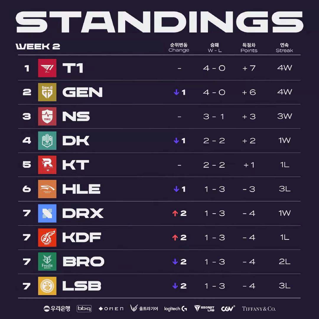 LNG这边,Doinb在加入队伍后,整体来说也说相当不错,lvmao与队伍的磨合也是逐渐变好,处在连胜的还有RNG和V5,其中V5更是在昨天面对TES的比赛中发挥出色,rich和photic的精彩发挥着实让人很惊喜,难道这就是米人B+队伍的实力吗?FPX在上周面对JDG失利,WBG上周也是取得了两场胜利,虽然这个队伍节目效果有点搞,但实力还是在线的。BLG目前两战全胜,可惜在今天对阵RA的比赛中,依然没有首发Uzi,OMG在上周遭遇了两连败,有点高开低走的迹象了,TES在对阵V5时的失利也看得出队伍依然存在很多问题,这也是他们接下来继续调整的。
